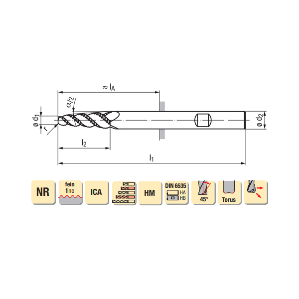 - ALCR coating for longer tool life, very well suited for high-alloyed materials.