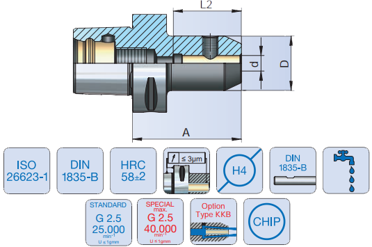 Capto EPS 63 - 16mm End Mill Holder EPS (ISO 26623-1) - 65mm Gauge - Eroglu