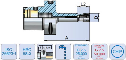 EP5.02.10.100.M CAPTO EPS 50 - ER16 MINI COLLET CHUCK EPS (ISO 26623-1) - 100MM GAUGE - EROGLU