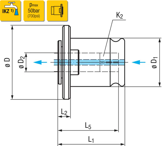 Can be used up to 50 bar with internal coolant supply (ICS).