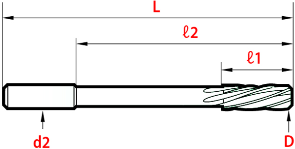 - Left hand spiral flute, right hand cutting, Similar to DIN 212 B